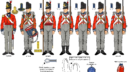 British line Infantry – black shakos, dark red tunics with (colour -dependant on regiment, a number of regiments had yellow and is a nice contrast to the red coat ) facings, white /grey trousers, white straps with light brown packs and ammo case on the belt, black shoes and waiste belt, grey roll on top of the packs