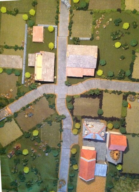 ParticipantThe German MG08 and the 77mm field gun targeted the British Vickers MG again. The net effect was only a further pin. The centre British infantry section assaulted the hotel. The remnants of the German squad on the ground floor were mopped up. The left flank British infantry section annihilated the Granatwerfer team. The right flank British infantry section, which had been stationed in the house next to the crossroads, now reoriented towards the German left flank squad threatening the 18 pounder. The German Zugführer had played an aggressive hand. He had attempted to control the centre and had refused the right flank. Unfortunately it hadn’t quite paid off.