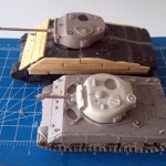 To achieve this look on your Warlord models – I’d recommend simply using Green Stuff – apply a thick layer direct to the vehicle – or, if you want to add a touch more detail – once it’s in place, press a lolly stick against it,  leaving an imprint of wood-markings left during the concrete’s curing process.