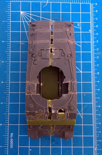 To achieve this look on your Warlord models – I’d recommend simply using Green Stuff – apply a thick layer direct to the vehicle – or, if you want to add a touch more detail – once it’s in place, press a lolly stick against it,  leaving an imprint of wood-markings left during the concrete’s curing process.