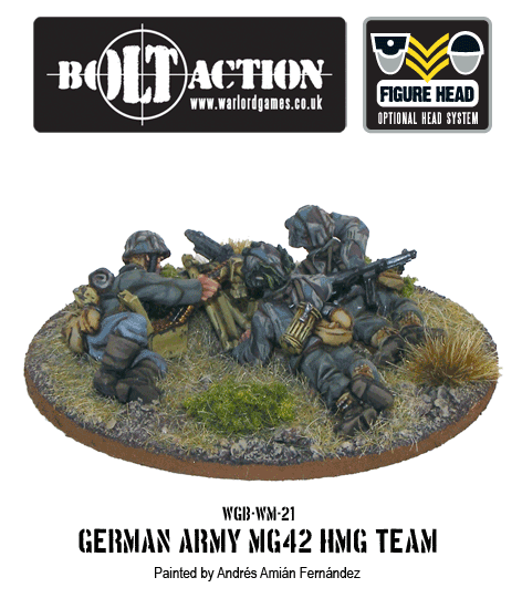 Nicknamed ‘Hitler’s Buzzsaw’, amongst other things, due to its tell-tale sound when firing 1,500 rounds per minute, the MG42 was a much-feared weapon in the Third Reich’s arsenal. The MG42 was a nasty weapon in it’s own right but when attached to a tripod they became lethal. Our MG42 HMG team is depicted deployed on a folded down tripod to conceal itself better from enemy sight. The Figure Head system gives you plenty of options for headgear and posing. You can also use the spotter as an artillery Forward Observation officer…