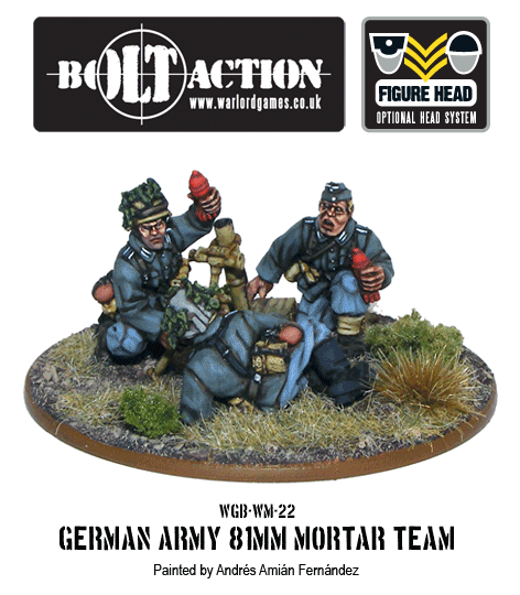 The mortar was was a terrifying weapon to face for all armies during the war. Capable of widespread damage and, perhaps more importantly, the psychological strain placed on recipients of a mortar attack, the mortar was a staple for all armies and in particular those on the defensive. Our 81mm German Army mortar team is seen laying down murderous fire on the allied attacks. As you can see from the images here the pack utilises the Warlord Figure Head ™ system of separate heads giving you bags of variety and posing options.