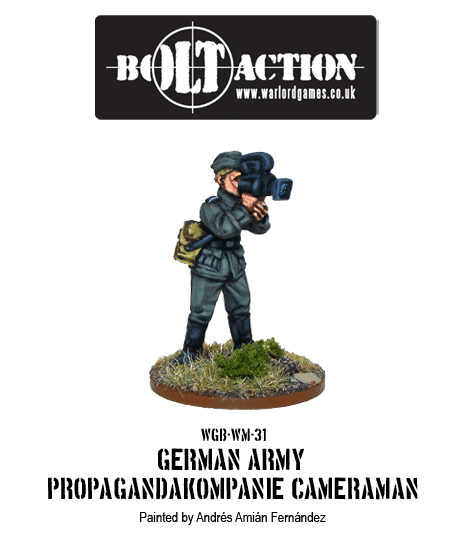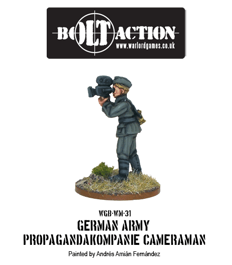 The Germans were masters of Propaganda and the sight of a camera-wielding soldier from one of the Propagandakompanies would not be a rare one. Capturing the glories of the Third Reich’s armed forces for the nationalistic public back home as well as bolstering morale for the troops on the front line, the cameramen performed a valuable role. Andrés has captured the feel of a lensman saving history onto celluloid perfectly and he’d make a great little diorama or part of a command squad…