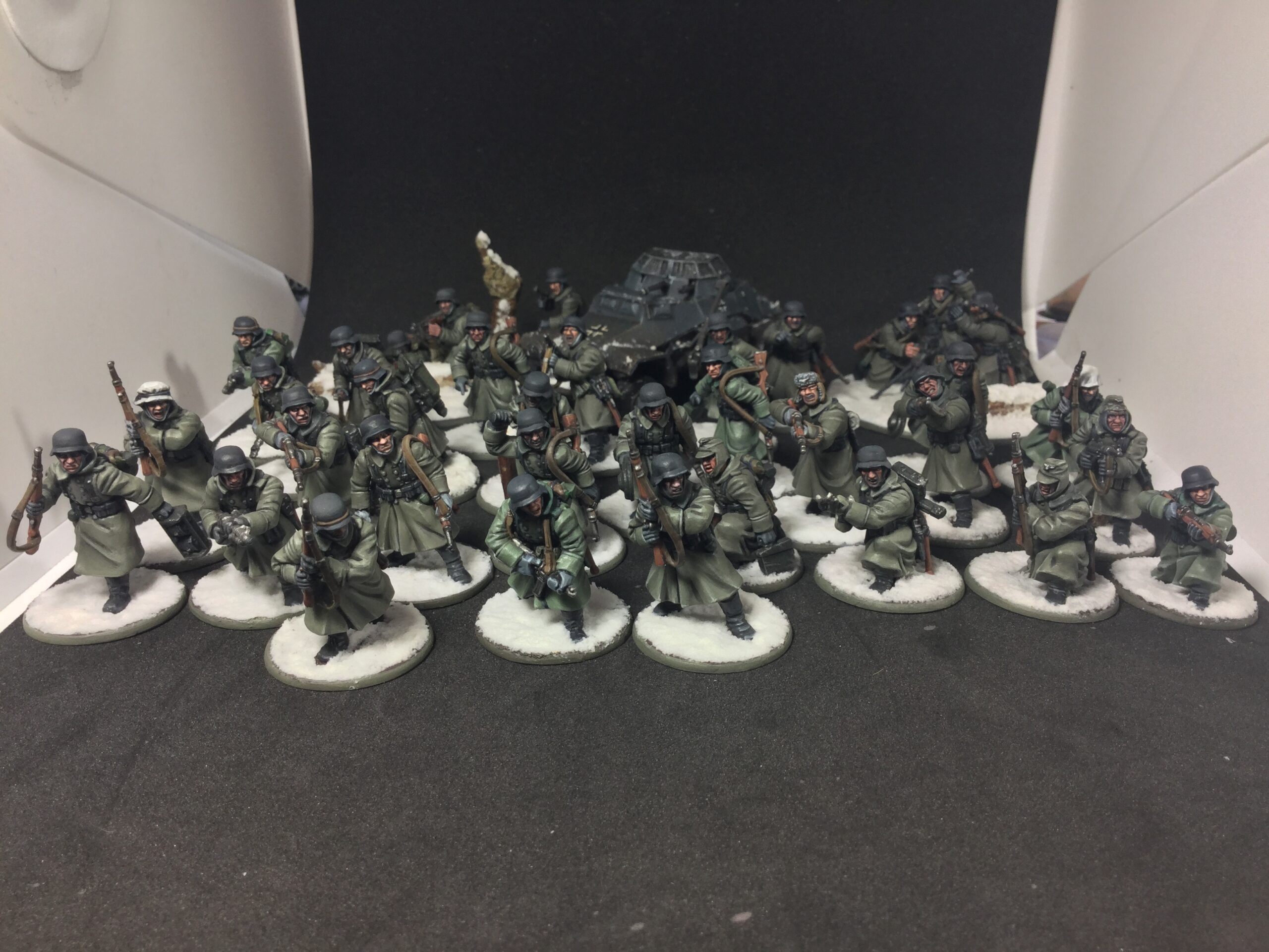 Also, I wanted to use only the Models from the German Infantry (Winter) Box from Warlord Games for the whole Army. Converting and combining different kits into a new Miniature is something I enjoy greatly.