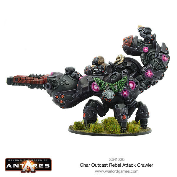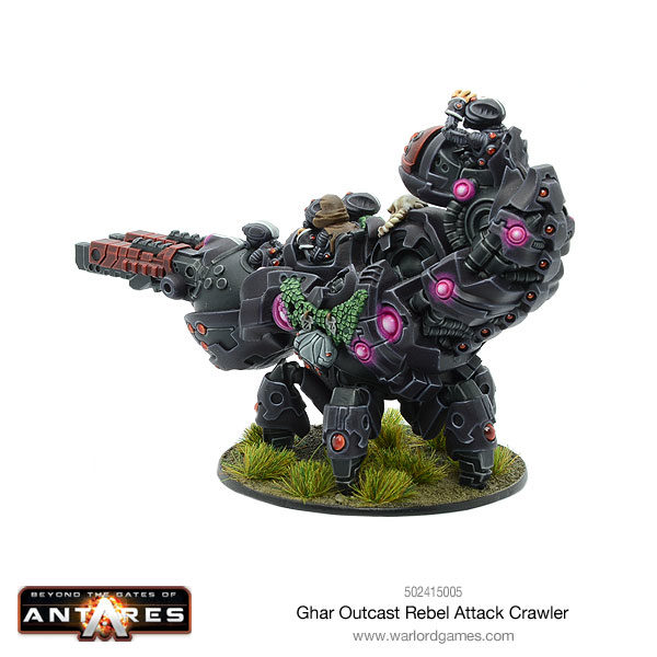 The Rebel Attack Crawler makes use of Ghar Command Crawler machines captured from Ghar Empire forces. This is a multi-legged vehicle powered by a volatile plasma reactor, the common power source used in other Ghar vehicles and battle armour suits.