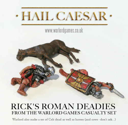 Rick: Today we have a relatively short piece on the Hail Caesar rules. We’re going to talk about how casualties are represented in the game and show a few examples of the kind of thing we’ve prepared for our own games.