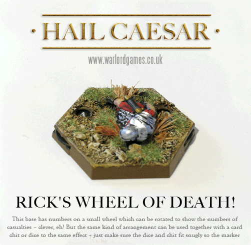 In Black Powder units can usually take three casualties maximum – they have a Stamina value of 3. In Hail Caesar standard sized units have a Stamina of 6 whilst small units have a value of 4. The reasoning behind this is discuss in my earlier overview of the game so I won’t go into it here. Suffice to say, a standard sized unit can potentially have one to six casualties that need to be recorded in some fashion.