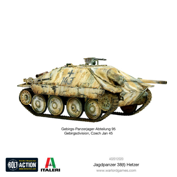 Includes: one 1/56th scale hard plastic Jagdpanzer 38(t) Hetzer tank destroyer, vehicle damage markers, full-colour assembly and painting guide, Bolt Action stat cards and waterslide decal sheet (for German and Hungarian vehicles).