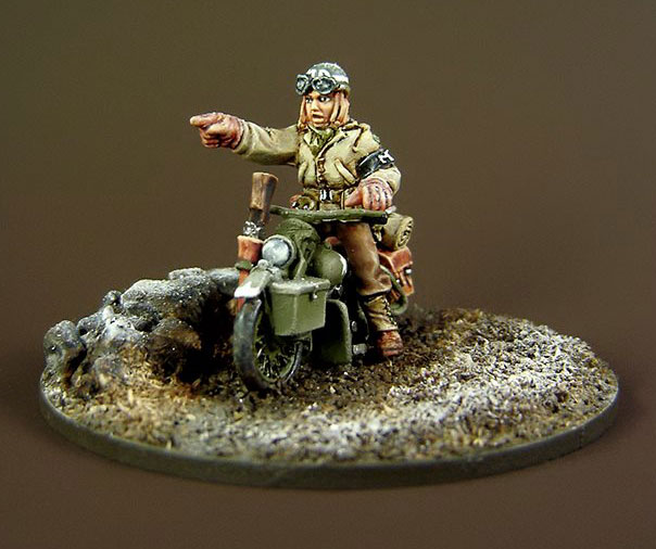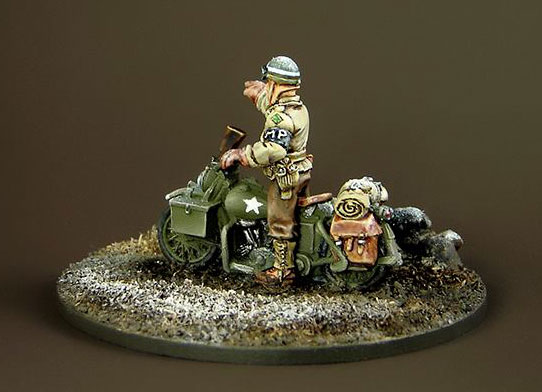 The talented Claudia Zuminich is back with this lovely US Military Policeman on his Harley Davidson motorcycle, on a nicely modelled scenic base: