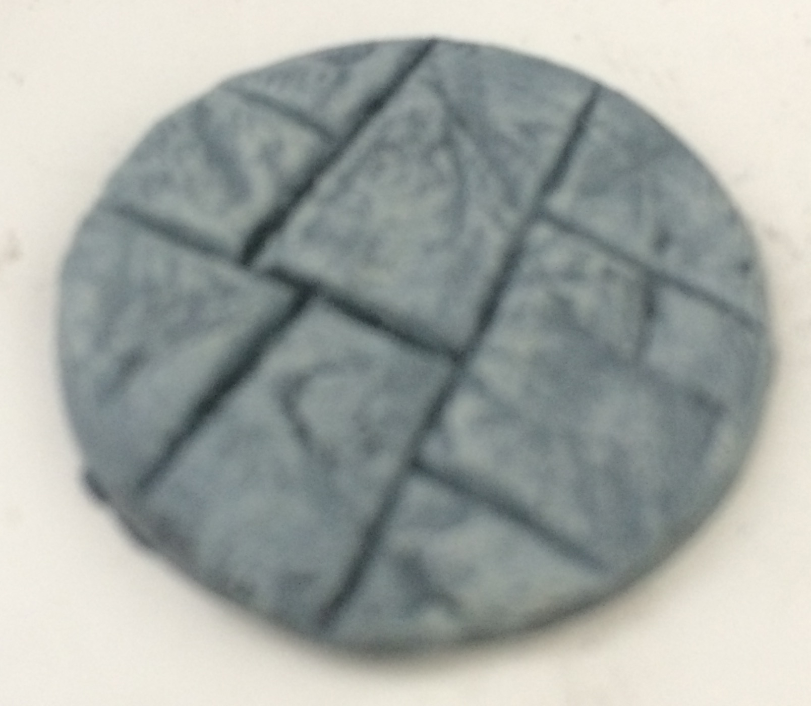 Lightly drybrush the base with Brainmatter Beige, focussing on the edges of the paving slabs.