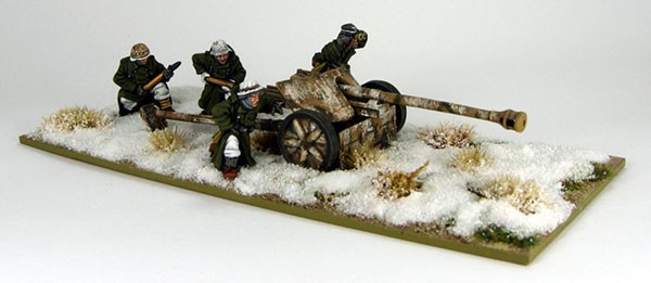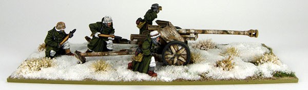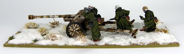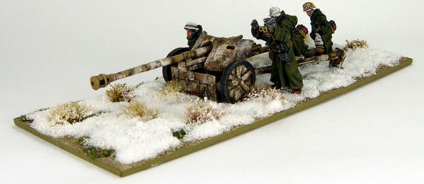 I used GW “Desert Yellow” as a base and applied some camouflage stripes with Reaper’s “Military Green”. I gave the Gun a few thin Washes with MIG Production “Dark Wash”. I used now a sponge to apply some white paint to represent very worn Winter camouflage. I varnished the Gun using GW “Lahmian Medium” and used the MIG Production “Neutral Wash” to dull down the white. I finally used “Buff” Oil Colour to lightly highlight the details and edges of the gun.