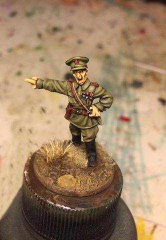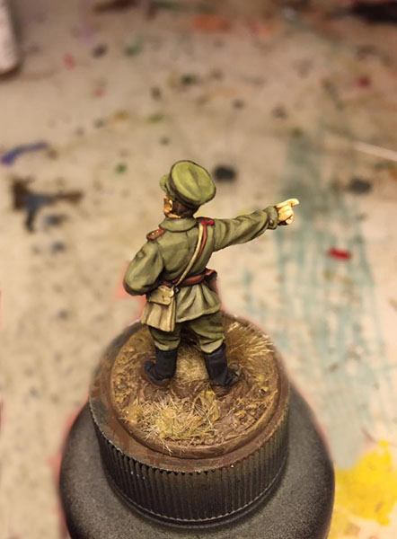 I have undercoated the figure black then base-coated the uniform with Russian uniform.