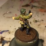 Then I started to highlight with Russian uniform and for further highlights I added Vallejo flat flesh.