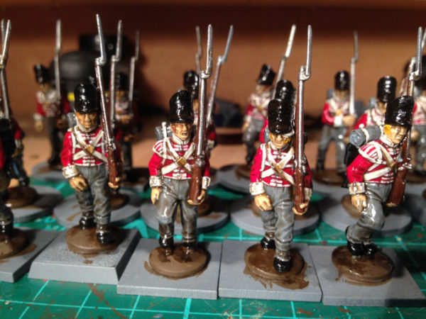 There are advantages and disadvantages to ‘batch’ painting. On the one hand, you do get a large number of figures finished in one go but this is offset by the time it takes to get to the final stage and see that the figures are table ready! A degree of patience is required to stick with the process. I think that there is also a drop in quality when painting a large batch as opposed to individual figures. However, as these will form the main bulk of the unit I don’t think that it will be quite so apparent and I will of course spend a bit more time on the officers.