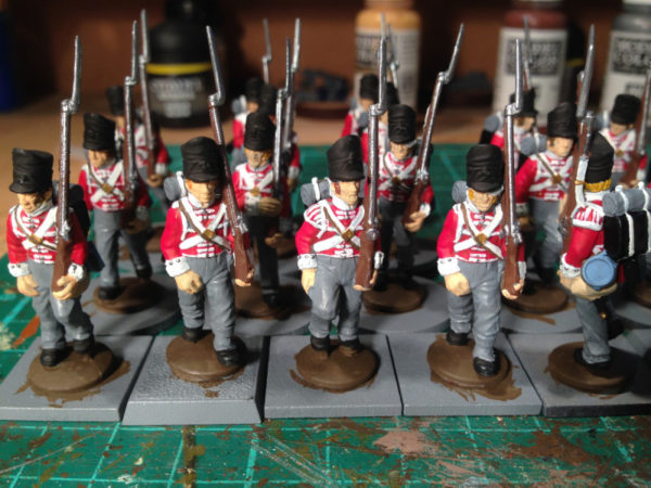 Last week I started painting the 32nd ‘Cornwall’ Regiment. I am going to paint the rank and file of 18 troops in one batch – quite a large number for me – I usually paint in batches of 6 or 8. I hope that the stage by stage pictures will be a help to any newcomers to the hobby and perhaps to anyone looking for ideas on painting in general.