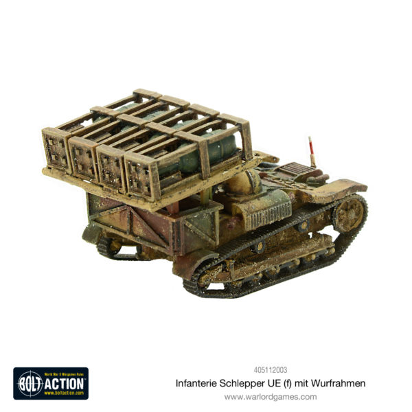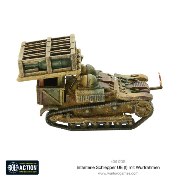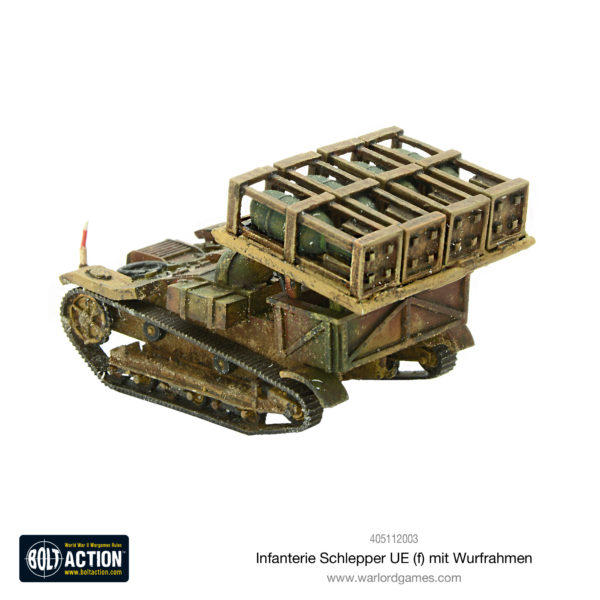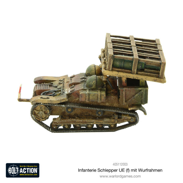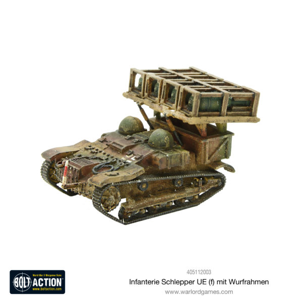 During the early part of 1944, Major Alfred Becker and his artillery command were responsible for taking obsolete captured British and French vehicles and refurbishing and redesigning them into useful machines. One such was the French UE carrier which Becker re-designed into rocket launchers mounting 28/32cm heavy rockets for infantry support. Its principal service was during 1943-45 with roughly 40 vehicles being made into this variant.