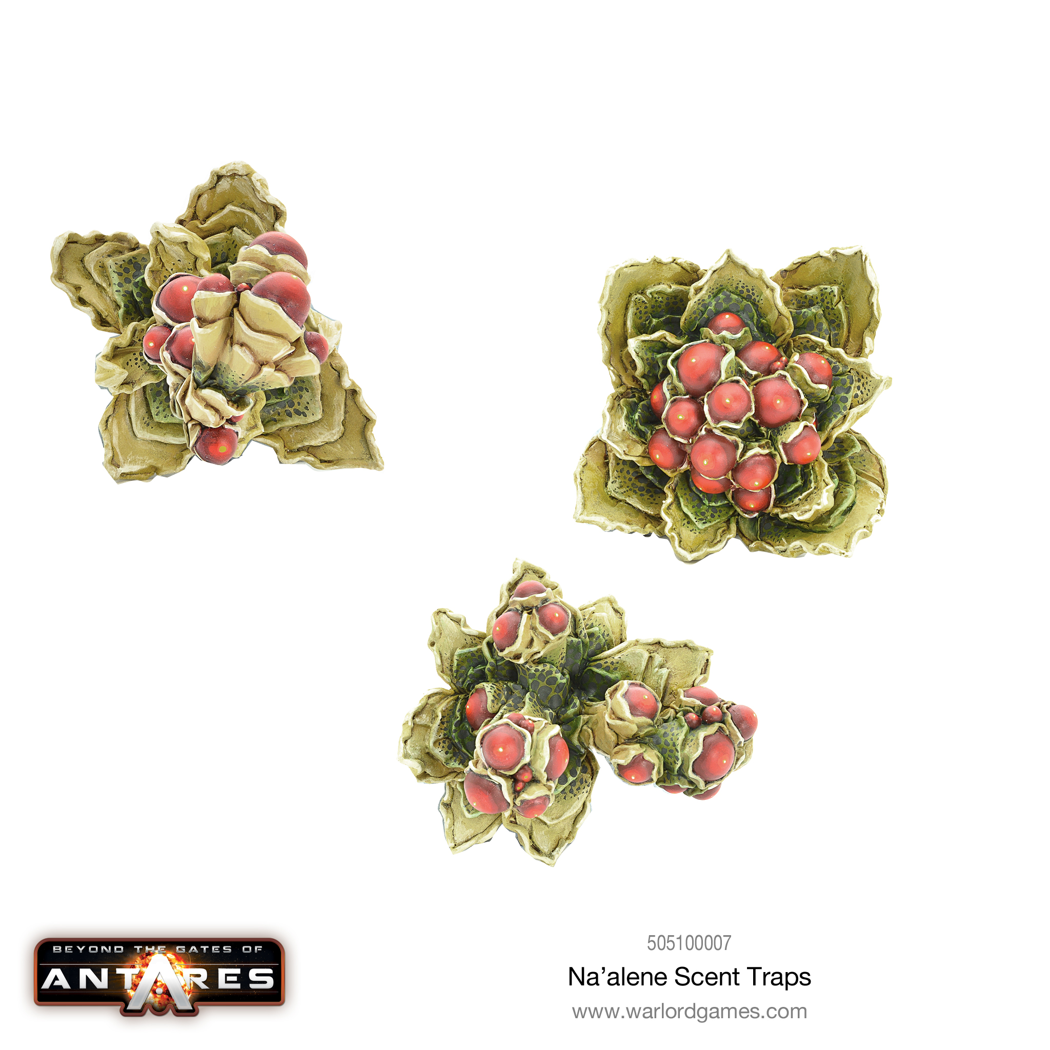 You can use Na’alene Scent Traps as area terrain in Beyond the Gates of Antares. Their specific rules are in the Dangerous Flora & Fauna section of The Dronescourge Returns.