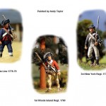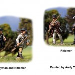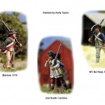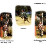 All the rank and file can be assembled in either formal or informal marching poses. Four figures on the ‘Rifleman’ sprue can be made up as either riflemen skirmishing or Continentals marching (formal and informal) in hunting shirts. These can be mixed in with the rest of the infantry, who are wearing coats, to create a less regular look to the unit.