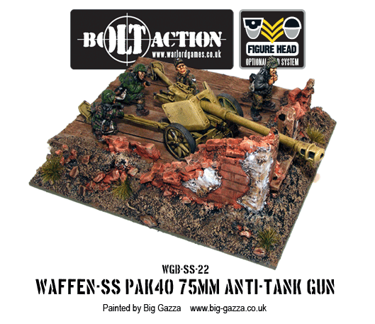 What’s that sound? Thunder? No, it’s “INCOMING!” The Waffen-SS PAK 40 75mm Anti-Tank Gun is ready to speak with authority on the tabletop. This set contains a metal 75mm PAK 40 with four SS Crewmen and is prepared to turn any enemy emplacements or armour into twisted hunks of metal.