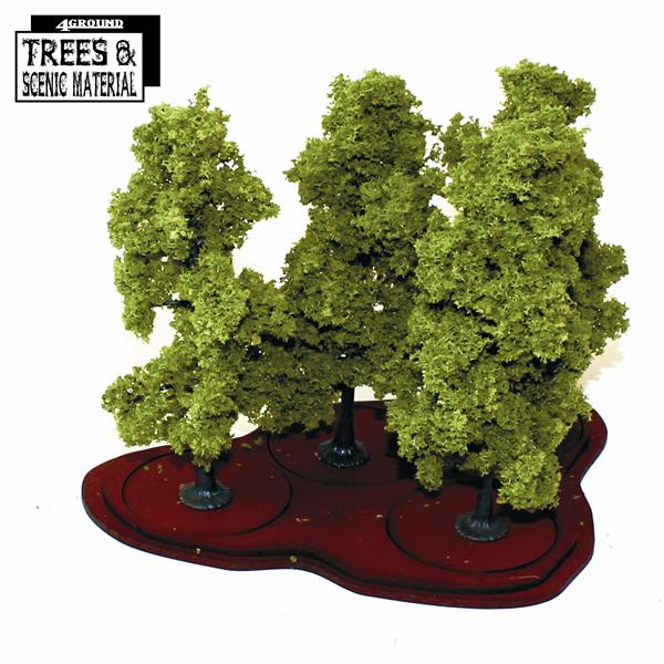 Each 4Ground Deciduous Woodlands pack comes with enough double sided pre-primed scenic tree basing for all of the trees in the pack. The individual trees should each be glued to their own round “biscuit” base, the biscuits in turn neatly locate within their collective woodland base (woodland bases can have locations for up to five trees).