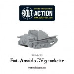 Also known as the Carro Veloce CV33 or L3/33, the Fiat-Ansaldo CV33 this Italian tankette that saw combat during World War II in addition to the inter-war period. Although designated a light tank by the Italian Army, its lack of turret, light weight and limited firepower would place it closer to contemporary tankettes.