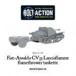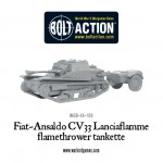 Before the start of the Second Wolrld War, the Italian military began to develop a flamethrower version of the CV-33, known as the Lanciaflamme.