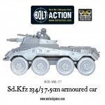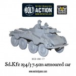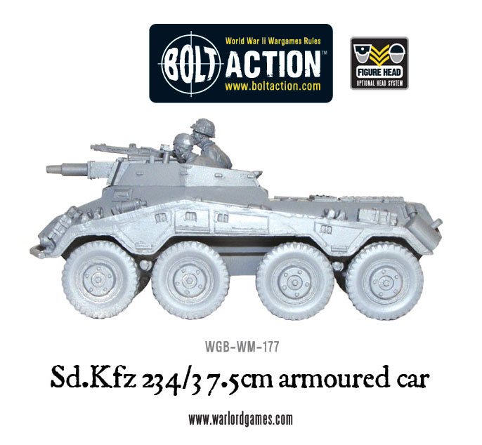 All the rules for the Sd.Kfz 234/3 7.5cm armoured car can be found in the first supplement for Bolt Action, Armies of Germany. It covers the forces of the Third Reich be they in Italy, France, Russia, Africa or the last days of Berlin.
