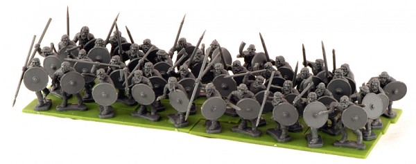 Inside you will find parts to assemble 40 finely-detailed Dark Age Warriors. Each Warrior can be armed with a spear but for extra flexibility, the set also contains additional parts for you to make up to 8 of these warriors with swords, up to 8 with hand axes, up to 32 with slings or up to 16 with javelins. The box also contains extra parts to create horn-blowers and plastic bases for all your figures.