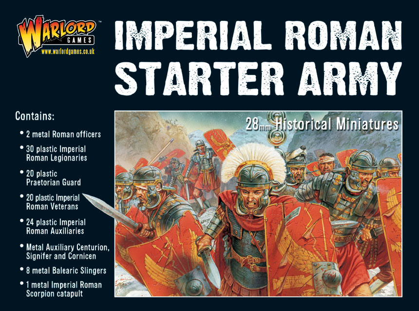 Marching over in hobnailed sandals to our Ancients range, we have the Imperial Roman Starter Army boxed set. If you want to hoist the Aquila for the glory of Imperial Rome, you can’t go far wrong a boxed set full of the following:
