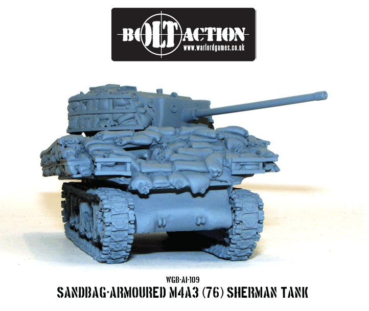 The latest vehicle in our Bolt Action range is a heavily sandbagged US Sherman 76mm, In an effort to deal with anti-tank guns and portable anti-tanks weapons such as the panzerfaust, tank crews went to great lengths protect their vehicles – often sandbags, tree trunks and other apparel was used as a form of ablative armour. Our new Sherman is just such a vehicle – grab yours from the Warlord webstore here.