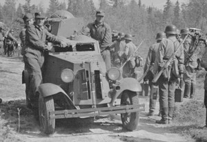 Panssariauto varmistustehtävissä Syöttötiellä.