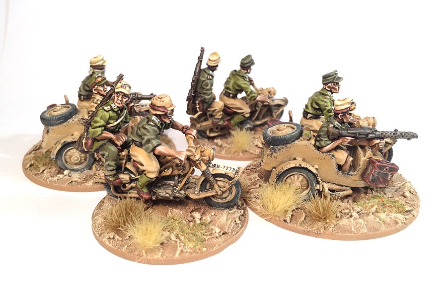 Bryan: I’ve recently painted a platoon of the famous Deutsches Afrika Korps (DAK) for Bolt Action. With the release of Duel in the Sun, I thought I would share how I painted mine. Here I use a squad of Kradschützen as an example, with a photo at each stage to explain the process. What follows is a step by step painting guide for Rommel’s vaunted veterans.