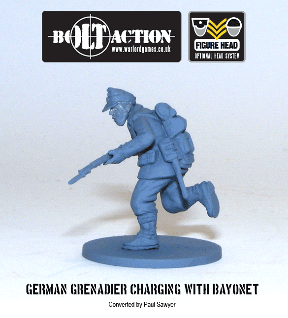 This one isn’t a conversion at all – I just like the movement that this build gives. A soldier firing his GW43 on the move, not wanting to present an easy target to the enemy. One of my pet hates are WWII models stood stock upright and firing as if at a firing range – look at any photo of the period and the subjects are keeping low or on the move! All the parts for this are straight from the boxed set.