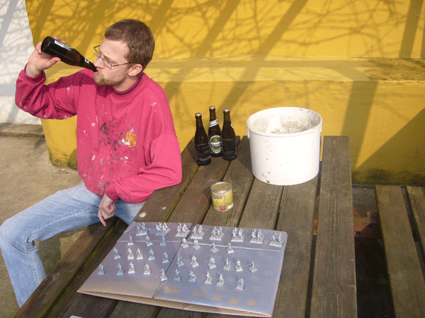 Happily our hero has the constitution of an ox and has little trouble basecoating units in a single bound!