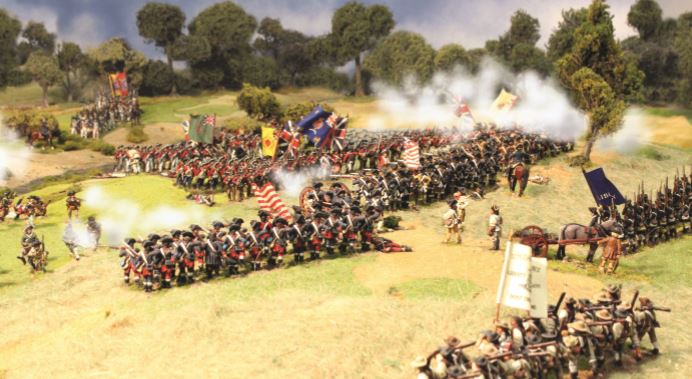 This was the first complete regiment I have painted for my Blackpowder American War of Independence British army, The 15th Foot (East Yorkshire) using Perry Miniatures plastics. They are themed around the Battle of Monmouth Courthouse (New Jersey, 1778), one of the bloodiest battles of the War of Independence. This was mainly attributed to the extremely high temperature of the day, combined with two sides who absolutely refused to declare loss and retreat! The battle was eventually fought to a standstill and the British dis-engaged to continue their march to New York. The scenario is represented in the Black Powder supplement – Rebellion!
