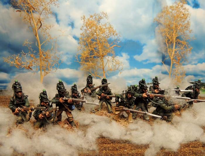 Following on from his lovely Napoleonic British Infantry here and here, Francesco Thau is back with more great photos of more great models – this time the King’s German Legion light infantry from our La Haye Sainte – Farmhouse Assault collector’s edition set:
