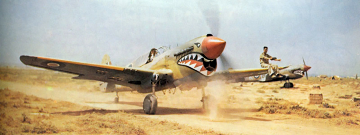 In Egypt, it was one of the first squadrons to use the Curtiss P-40 Tomahawk in combat. Inspired by the gaping air intake under the aircraft’s nose and the Bf 110s of ZG.76, the squadron painted their aircraft with distinctive shark mouths, earning the moniker of Shark squadron.