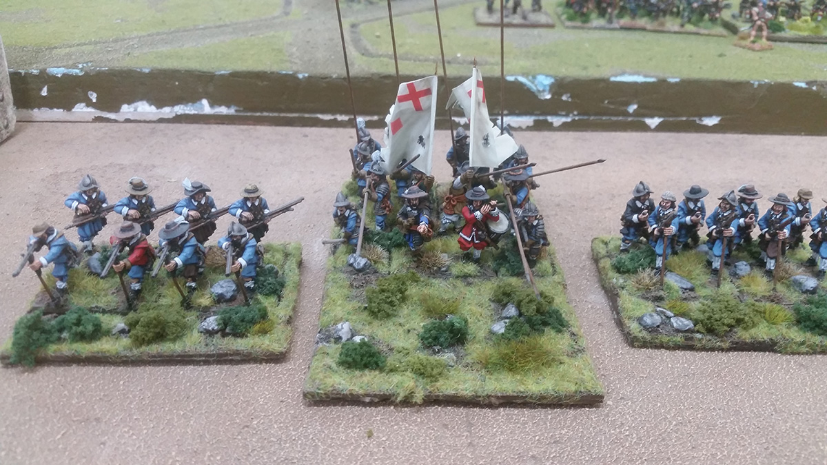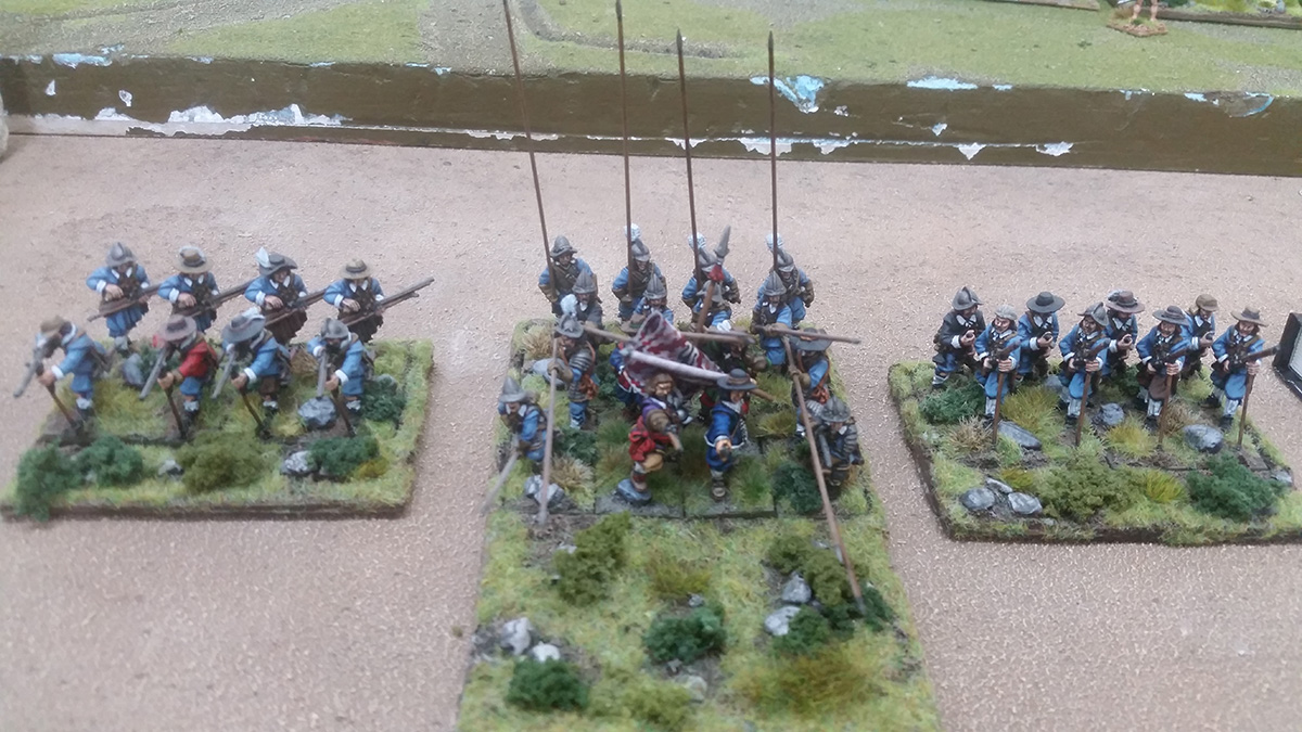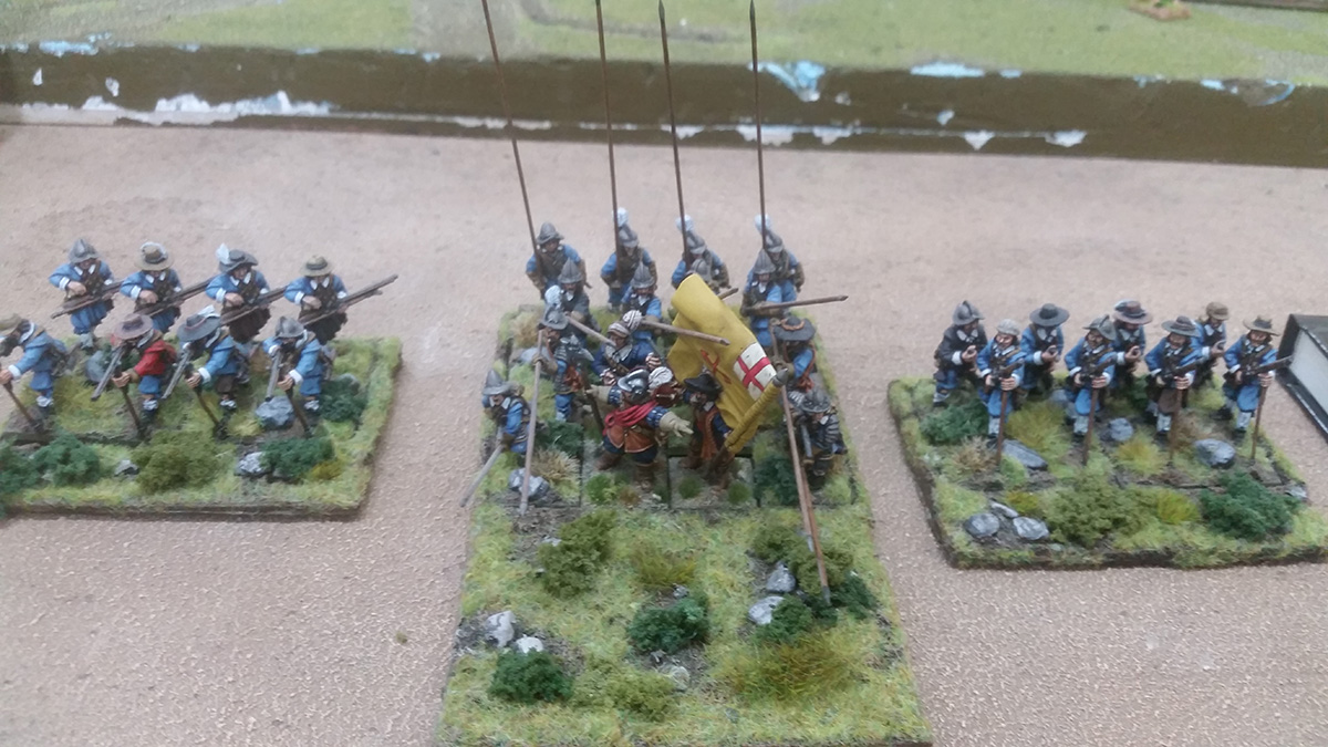 As you can see, we’ve used the same basic troops – the pikemen and attendant musketeers to create each regiment, but we’ve changed the command groups to produce a completely different unit. Each command group has been given a different flag and paint-job to represent the appropriate unit.