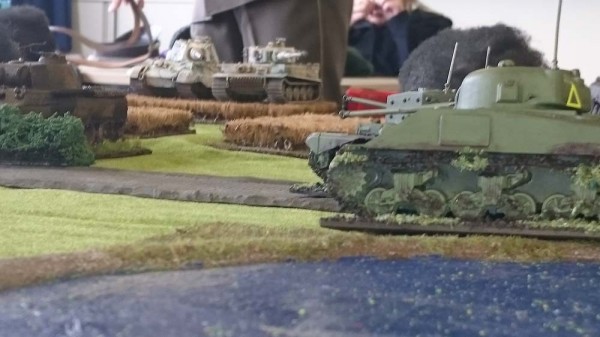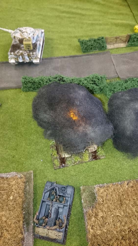 And finally the lead Sherman, in a desperate attempt to stop the last German tanks left on the table from following their comrades, resorts to ramming! But of course the crossroads is held by the King Tiger which performs an outstanding rearguard action…