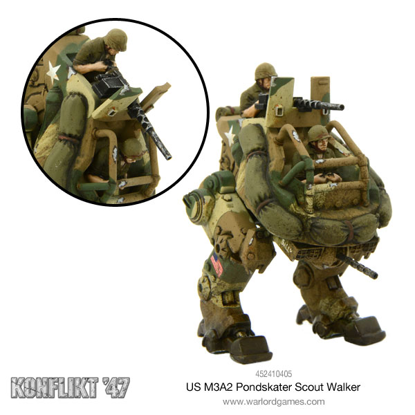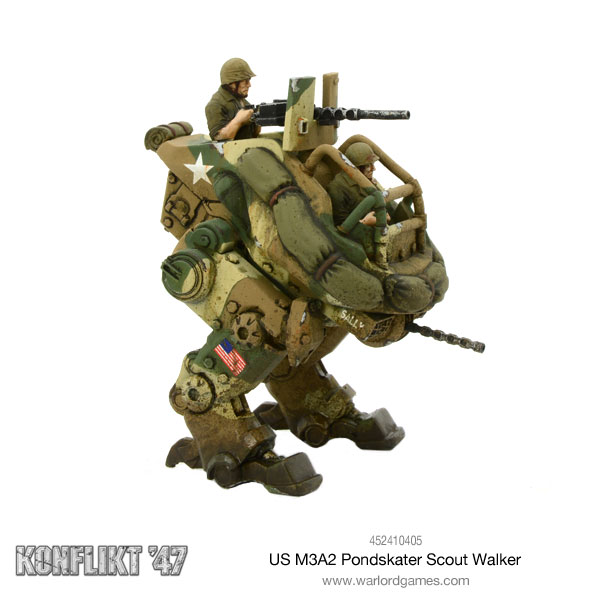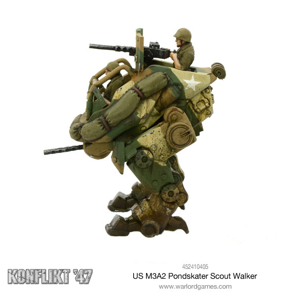 Meanwhile, in the Pacific, the USMC readily accepted the Pondskater as the ideal scouting platform to accompany their Island raider special units. Its amphibious ability allows it to cross almost any battlefield terrain and cope with most conditions in the close confines of the jungle.