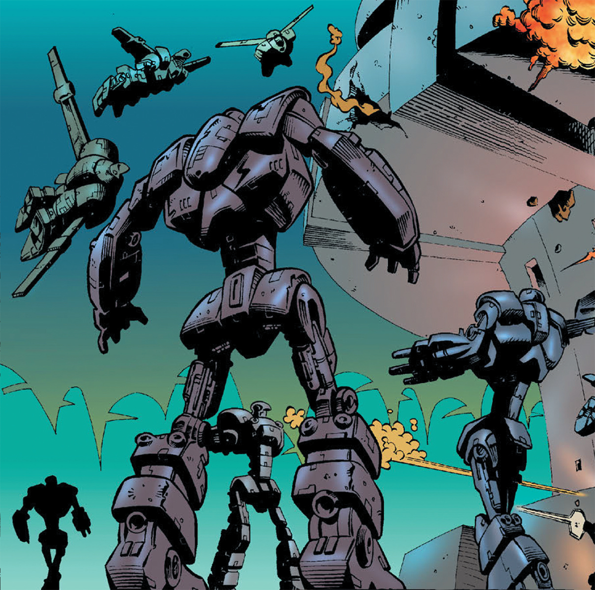 The main reason for the extremely high rates of unemployment in Mega‐City One can be traced to the increasing use of robots to perform manually intensive tasks during the 21st century. Robots progressed rapidly from simple production line units to fully ambulatory android models that freely mixed with the human population. Despite robots freeing humanity from tedious, repetitive, and hazardous activities they tend to be regarded with suspicion by a population looking for something to blame for their unfulfilling lives. Of course, if offered a job currently performed by a robot many Mega‐City citizens will complain about having to do such menial work, generally being too lazy to get off their backsides.