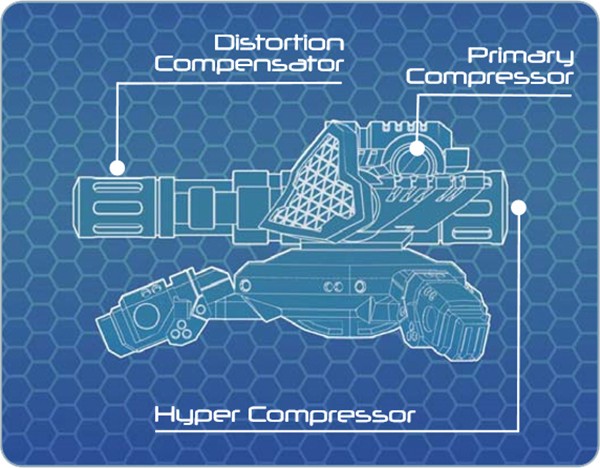 ‘It uses a hyperlight mesh to create a maze of mass sinks. In effect, it slows you down, drastically. Arc munition is similar, but uses the mesh to create an energy sink that alters the trajectory of weaponry. We also have blur that creates a localised spatial distortion that is difficult to target and shoot through.’