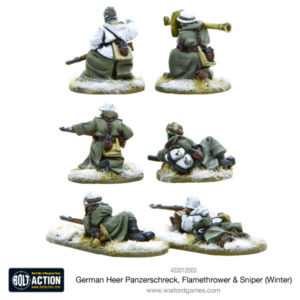 This range of German Grenadiers, in a wide array of winter clothing, represents very well the rag-tag look of soldiers of any winter front, from the Soviet Union to the Ardnennes. These figures are ideal for use as Heer or Waffen-SS in Bolt Action.